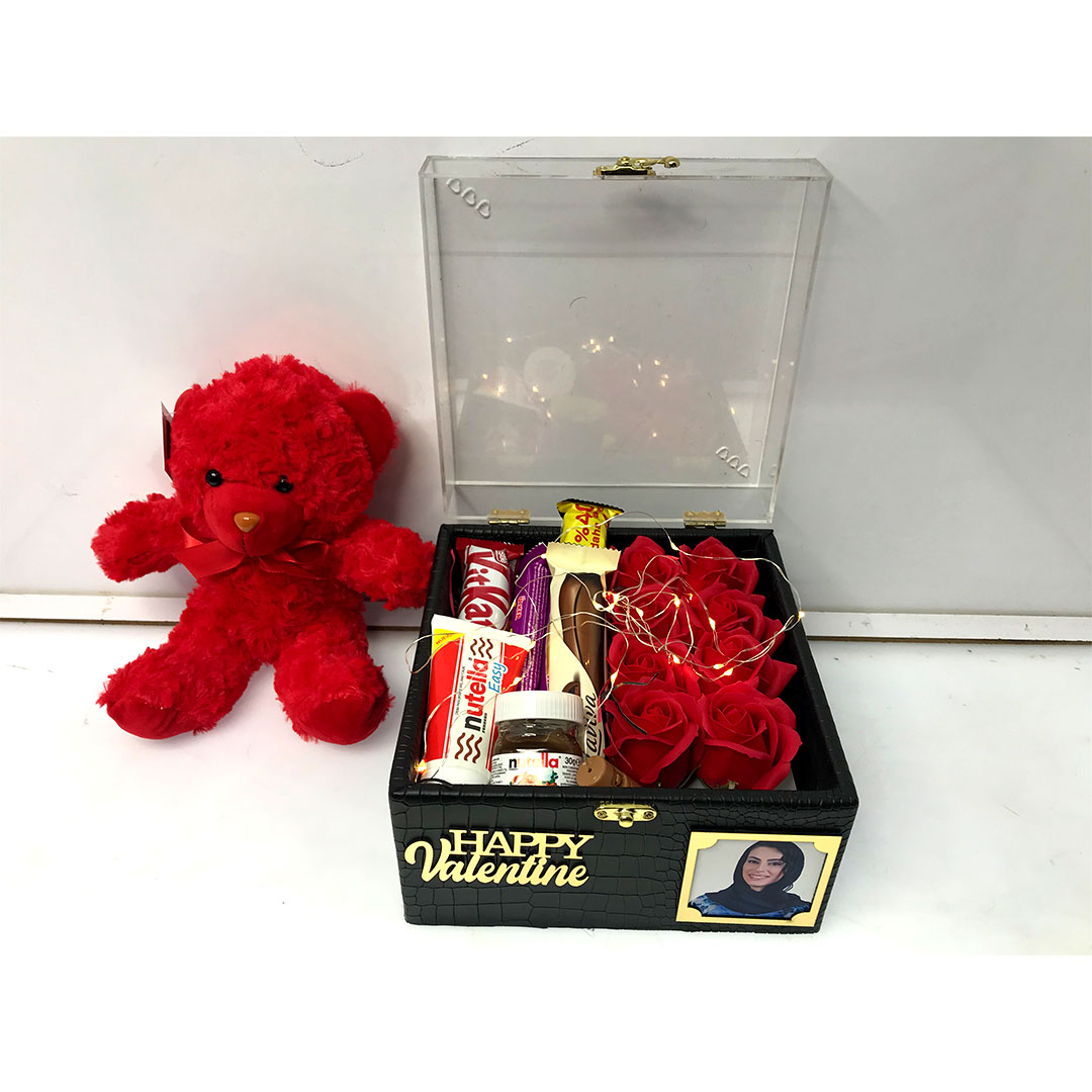 محتویات رزباکس : گل رز ، عکس در ابعاد 6-6 و 3 پلاک شامل: نام ،تاریخ و متنِ مد نظر شما