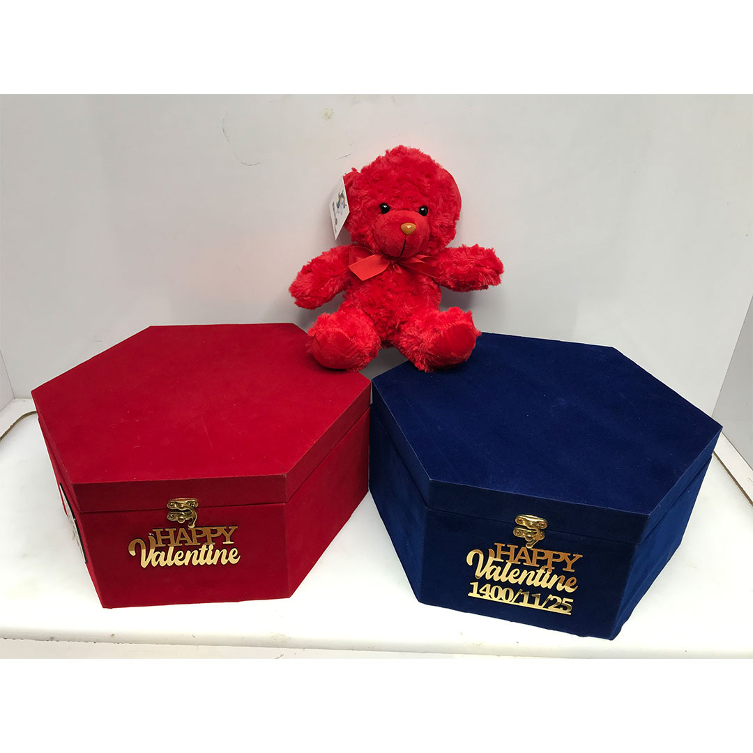 رزباکس شش ضلعی مخملی آبی سایز بزرگ