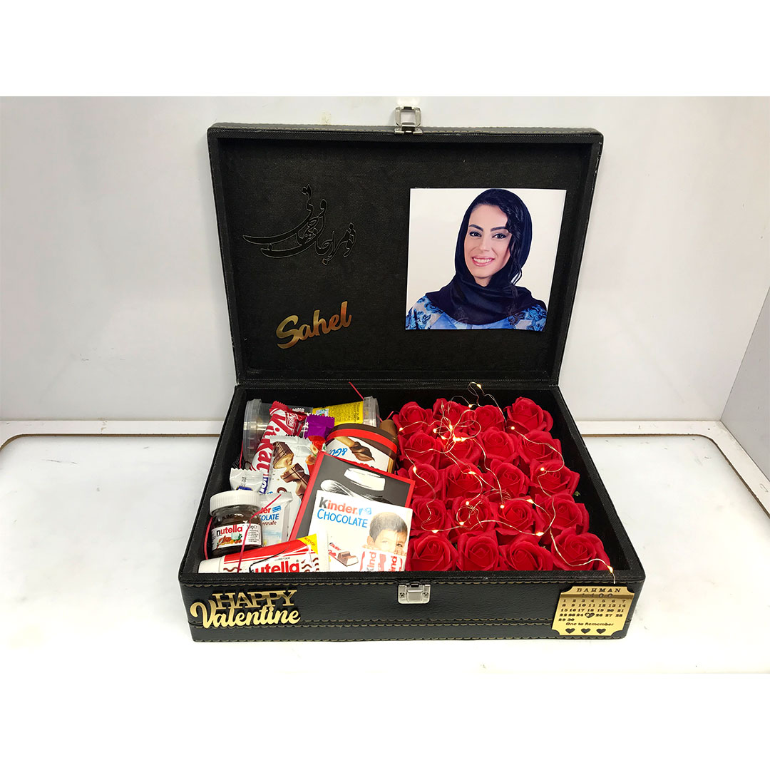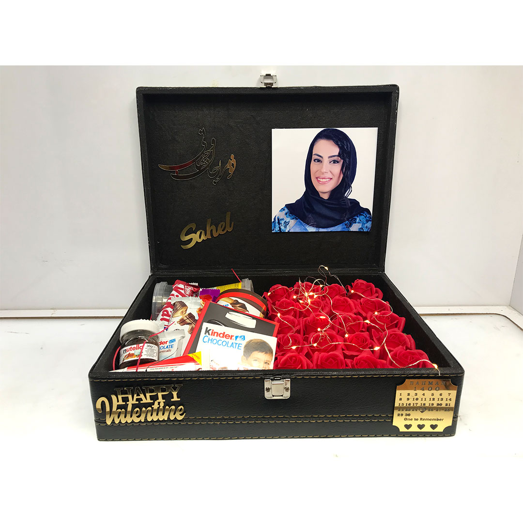 محتویات رزباکس : گل رز ، عکس در ابعاد 6-6 و 3 پلاک شامل: نام ،تاریخ و متنِ مد نظر شما